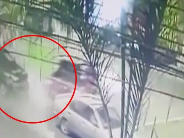 Según cámaras de seguridad, el ladrón que manejaba la camioneta hace una peligrosa maniobra para perder el rastro de la Policía Nacional del Perú (PNP) pero el patrullero que termina impactándolo para detener su huida.