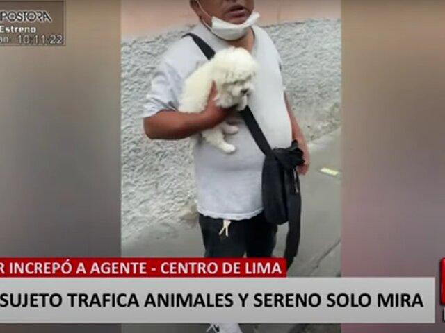 Un sujeto llevaba entre sus manos un cachorro. Él estaba comercializando la vida animal. Indignado por el accionar de estos traficantes de animales, el regidor de la Municipalidad Metropolitana de Lima, Víctor Aguilar, increpó al personal de seguridad, por su pasividad.