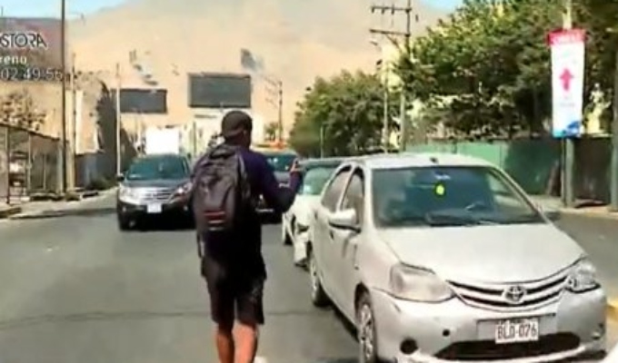 De manera matonesca un ciudadano extranjero que se gana la vida como limpiaparabrisas agredió a un conductor que se negó a recibir el servicio del sujeto en Surquillo.