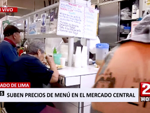 En el Mercado Central, en el Centro de Lima, ya se empieza a sentir el incremento de algunos productos, pero lo que también ha sorprendido a los comensales es el aumento de los precios del menú de 8 a 10 soles.
