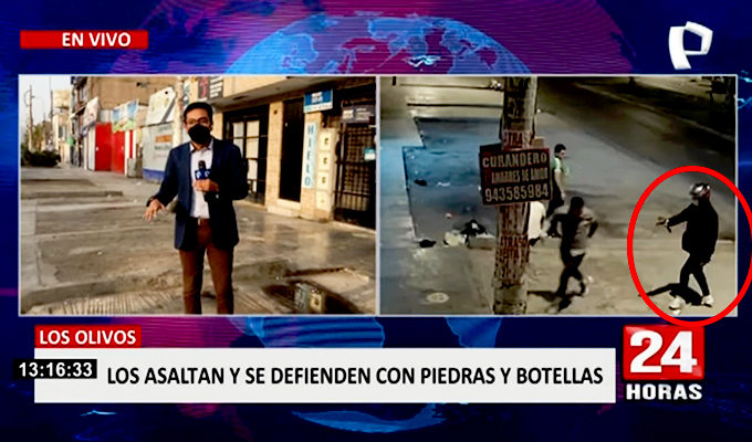 En la cuadra 53 de la avenida Las Palmeras, en Los Olivos, se reportó el robo a tres amigos que se encontraban bebiendo sentados al borde de la vereda. Un sujeto llegó en una moto lineal, sacó un arma de fuego y les quitó sus pertenencias mientras los amenazaba.