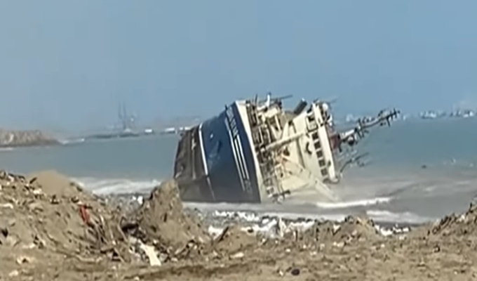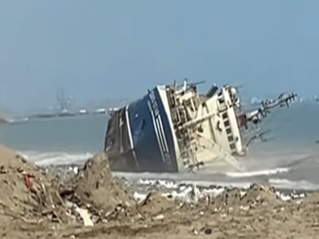 La embarcación de la empresa Ocean Stars terminó volteada en la playa Oquendo, en el Callao, el fuerte oleaje que golpea por estos días a las playas del primer puerto y la antiguedad de este barco habría generado que se derribara.