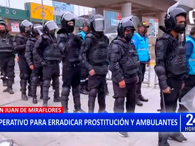 En el cruce de las avenidas San Juan y Los Héroes en San Juan de Miraflores, se inició un operativo contra el comercio informal, el cual se ha apoderado de veredas y pistas, además, se busca erradicar el meretricio en la zona, el cual se habría proliferado afectando a los vecinos.
