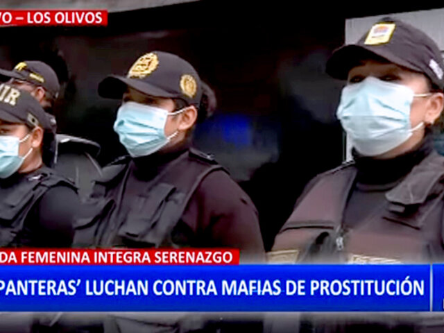 La brigada femenina ‘Las Panteras’ es la encargada de hacerle frente a las mafias de la prostitución en Los Olivos. Desde que se creó este grupo de serenas, los índices de prostitución se han reducido, según informó el subgerente de serenazgo del distrito.