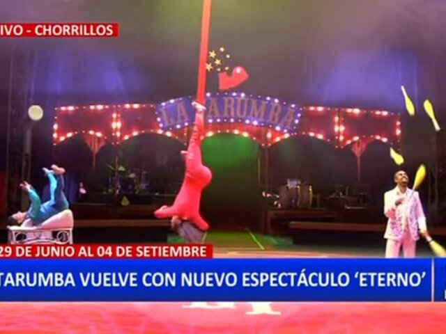 Tras más de dos años de inactividad por las restricciones a causa de la pandemia, La Tarumba, una de las compañías de circo, teatro y música más grande de nuestro país vuelve a los escenarios con una nueva puesta en escena titulada "Eterno".