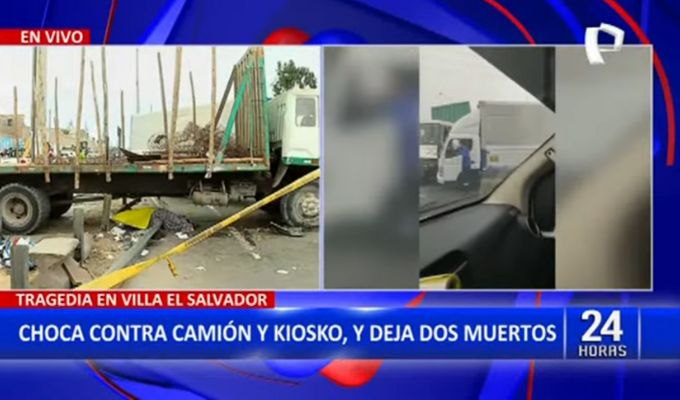 Un nuevo accidente de tránsito se registró hace pocas horas en Villa El Salvador. Un tráiler, que aparentemente se le habrían vaciado los frenos, chocó con un camión y arrasó con un kiosco en las inmediaciones. Producto del fatal incidente, 2 personas perdieron la vida.
