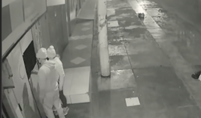 A las 3:00 a.m., cámaras de seguridad captaron el preciso momento en el que dos delincuentes se acercaron al ingreso de una licorería, y fingiendo ser pareja forcejearon la puerta del establecimiento ubicado en San Juan de Lurigancho.