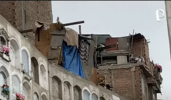 Un hecho increíble se registra en El Agustino, una precaria vivienda fue construida nada menos que sobre los nichos del cementerioEl Ángel.