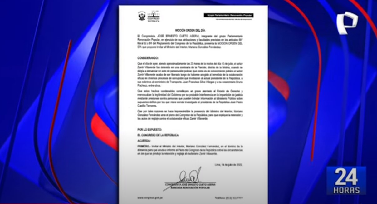 En el documento también se resalta que el ministro Mariano González ha solicitado a la Comandancia General de la PNPque le brinde un informe sobre lo ocurrido.