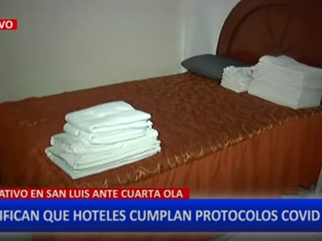 El Área de Inspección de Salubridad de la Municipalidad de San Luis, realizo un operativo en distintos hoteles del distrito, con la finalidad de que todos ellos estén cumpliendo con los protocoles debidos ante la cuarta ola de Covid-19 y, estén en condiciones salubres para los visitantes que legarán por Fiestas Patrias.