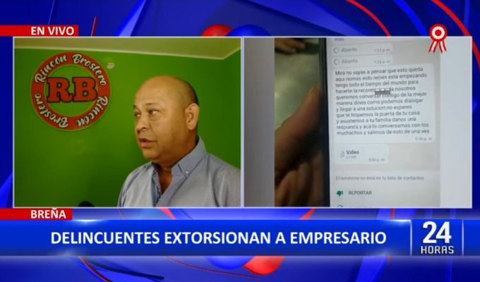 Un empresario, dueño del negocio "El Rincón Brostero", en el distrito de Breña, denunció que extorsionadores vienen enviándole mensajes amenazantes a través de WhatsApp, exigiéndole el pago de 5 mil soles para "cuidarlo".
