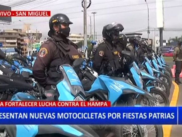 A pocos días de celebrar las Fiestas Patrias y con el objetivo de salvaguardar a la ciudadanía en una fecha tan importante para el país, la Municipalidad Distrital de San Miguel presentó nuevas motocicletas que servirán para que las autoridades se refuercen en la lucha contra la delincuencia.