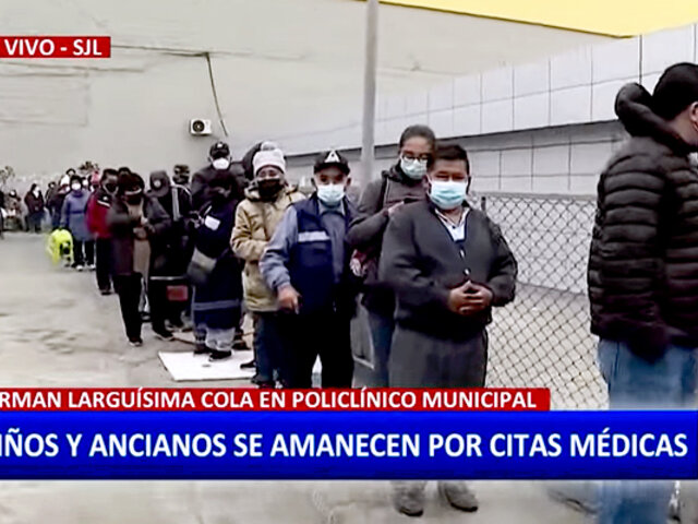 En el Policlínico Municipal de Salud en San Juan de Lurigancho se ha reportado una larguísima cola desde muy temprano, donde muchas personas, mayormente ancianos, pugnan por obtener una cita en diversas especialidades.