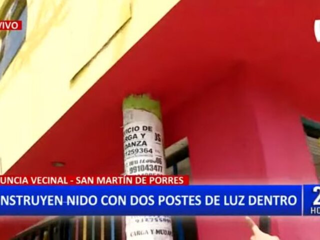 Un hecho insólito se registró en el distrito de San Martín de Porres. Vecinos de la cuadra 7 de la avenida Germán Aguirre denunciaron que un jardín de niños en la zona fue construido con dos postes de luz en el interior de su fachada.
