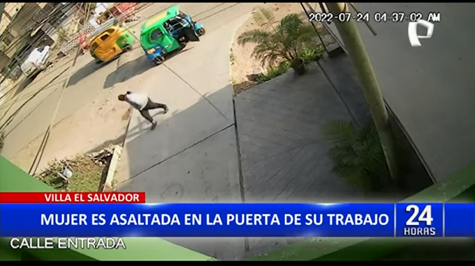 Cámaras de seguridad de una vivienda ubicada en el distrito de Villa el Salvador, habrían captado el preciso momento en el que una mujer de mediana edad habría sido perseguida por un delincuente armado que pretendía asaltarla.