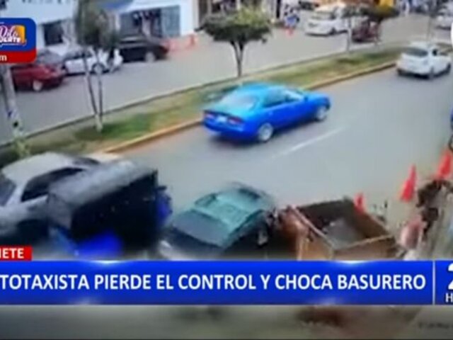 Cañete: Mototaxi pierde el control y choca con un contenedor de basura