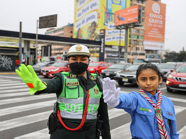 Con el uniforme característico de la asociación de scouts del Perú, guantes blancos y pitos, desde las 7:30 a.m. (de la mañana), los menores acompañaron a la policía de tránsito en los principales cruces de calles de Lima y Callao.