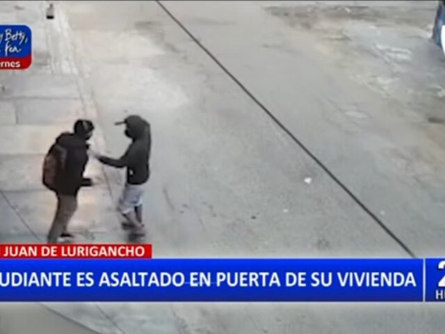 En San Juan de Lurigancho, un joven estudiante se convirtió en víctima de la criminalidad, luego que un hampón lo asaltara en la puerta de su vivienda, el joven salía de su domicilio, cuando fue interceptado por el facineroso, quien estaba armado.