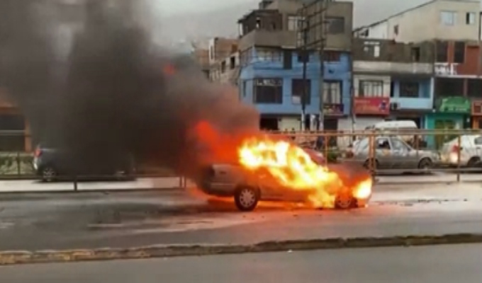 Minutos de terror se vivió en la avenida Túpac Amaru del distrito de Independencia cuando un auto se prendió en llamas consumiendo rápidamente todo el vehículo.
