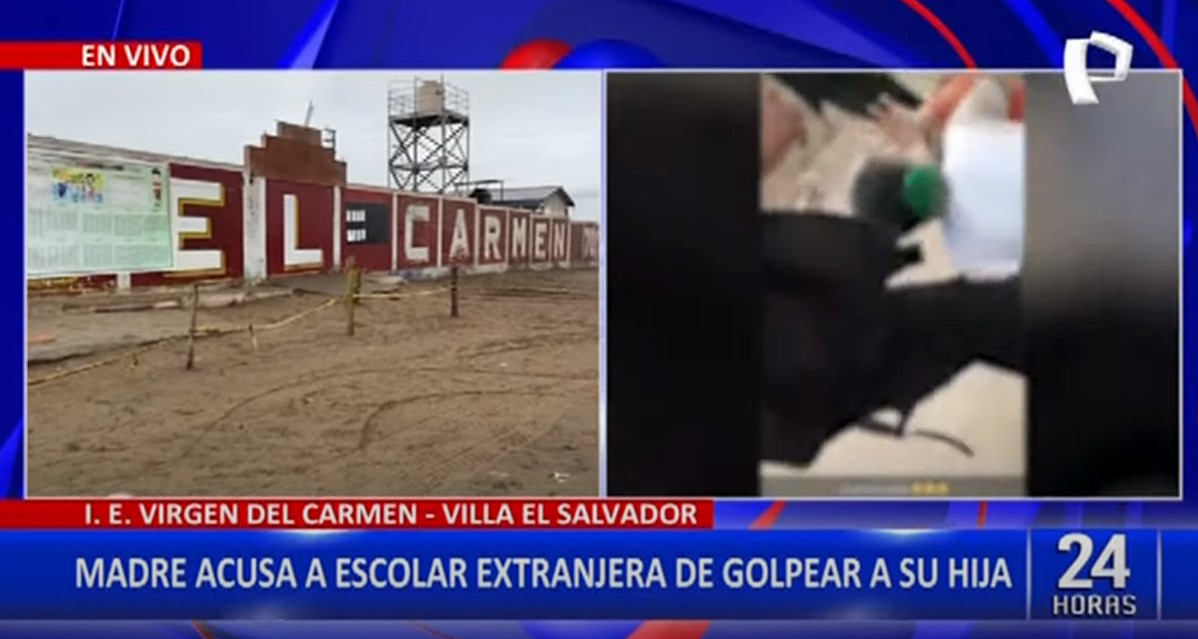 Una madre de familia muy indignada, acusó a una estudiante extranjera de golpear a su hija, luego de que ellas y su grupo de amigas la esperara a la menor de 15 años fuera de la I.E. Virgen del Carmen, en Villa el Salvador, centro educativo en el cual estudian, para agredirla, según ella, por haberla acusado con el profesor.