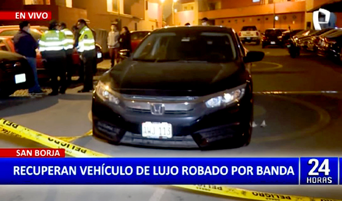 En las Torres de Limatambo, distrito de San Borja, terminó una larga persecución durante la madrugada, pues unos sujetos robaron un vehículo de alta gama a una pareja de esposos. La Policía pudo recuperar el vehículo robado, pero no lograron detener a los delincuentes.