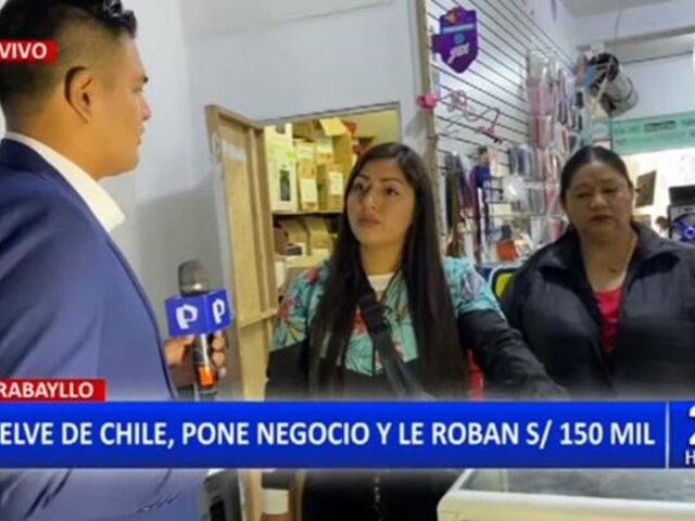 En el distrito de Carabayllo, una joven empresaria se convirtió el víctima de la inseguridad ciudadana, luego que delincuentes ingresaran a su negocio de artefactos electrónicos para llevarse más de 150 mil soles en productos. La víctima regresó a nuestro país para emprender, tras tras vivir durante 10 años en Chile.