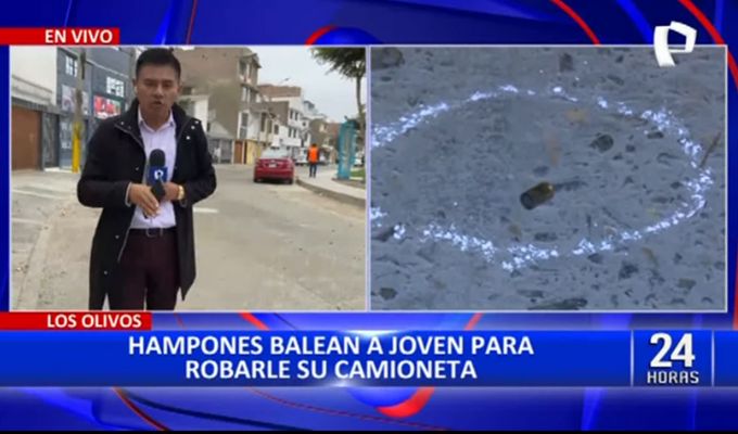 En el distrito de Los Olivos, un joven de 31 años se convirtió en víctima de la inseguridad ciudadana, luego que cuatro delincuentes lo interceptaran y lo balearan con el fin de robar la moderna camioneta en la que iba a bordo.