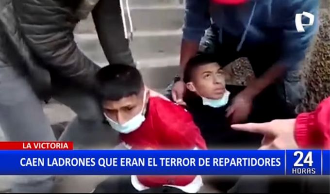 En el distrito de La Victoria, agentes de la Policía Nacional capturaron a dos delincuentes, quienes eran el terror de los repartidores de delivery en el distrito, a su última víctima le arrebataron su teléfono celular cuando transitaba por la zona.