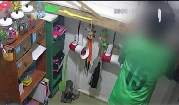 Las imágenes, que se han vuelto virales en las redes sociales, muestran a los niños trepando las rejas hasta el techo para entrar el quiosco y cometer sus fechorías.