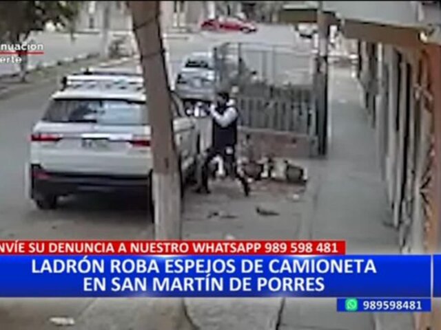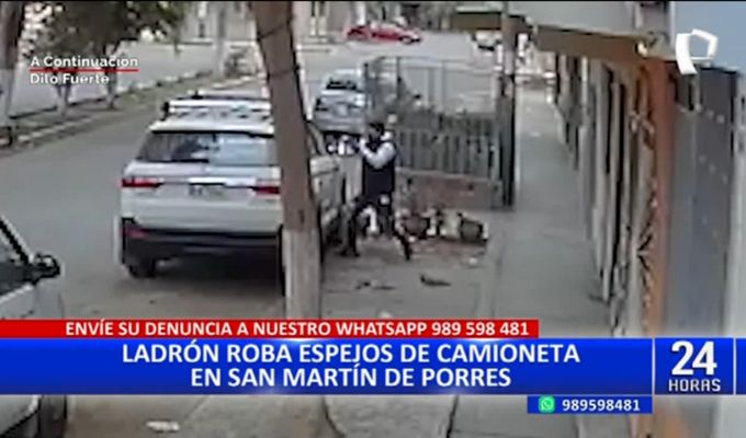 A través de nuestro WhatsApp de denuncias de 24 horas, un vecino del distrito de San Martín de Porres denunció el robo de los espejos retrovisores de una camioneta, el delito fue cometido por un sujeto que pasaba por la zona y terminó huyendo en una mototaxi.