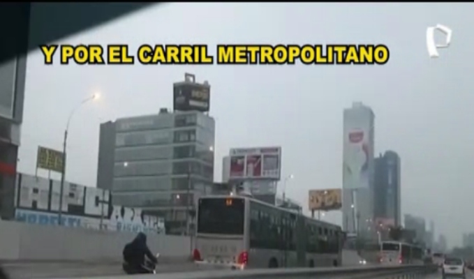 En las imágenes registradas por otros conductores, se puede apreciar como un motociclista invade con total desparpajo la ruta del Metropolitano en la Vía Expresa y a toda velocidad, sin importarle las consecuencias.