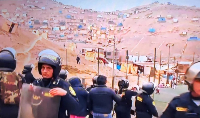 En un operativo que comenzó a tempranas horas de este lunes, la Policía Nacional del Perú (PNP) buscó desalojar a cerca de 2 mil familias asentadas en las partes alta del asentamiento humano Francisco Tudela y la urbanización Santa Rosa del distrito de Ventanilla hace cerca de un mes.