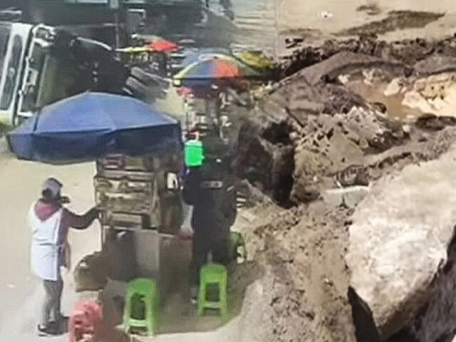 Tal como se aprecia en las imágenes, el pesado camión se volcó y destruyó la calle ocasionando un enorme forado y dañando las tuberías de agua potable. Destaca también que el vehículo pasó muy cerca de unos puestos de venta de comida que, afortunadamente, no salieron dañados.