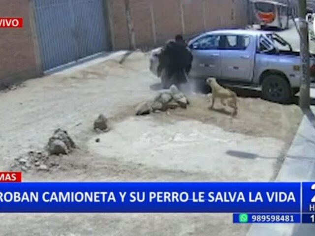 En el distrito de Comas, un comerciante se convirtió en víctima de la inseguridad ciudadana luego que dos delincuentes lo encañonaran para robarle su moderna camioneta recién adquirida. No obstante, la intervención de su valiente perrito evitó que los hampones disparen a su dueño.