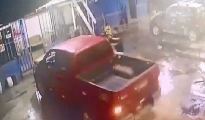 Un hombre quiso lavar su moderna camioneta, pero resultó convirtiéndose en la nueva víctima de una banda de delincuentes.