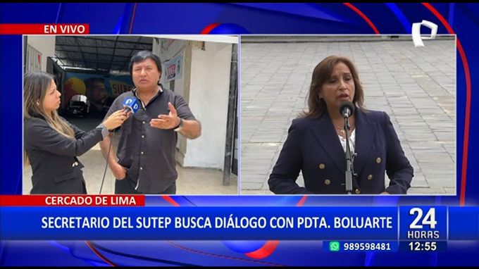 En entrevista exclusiva con 24 horas edición mediodía, el secretario general del Sindicato Unitario de Trabajadores en la Educación del Perú (Sutep), Lucio Castro, hizo un llamado a la presidenta de la República Dina Boluarte, para que se pueda entablar una mesa de diálogo.