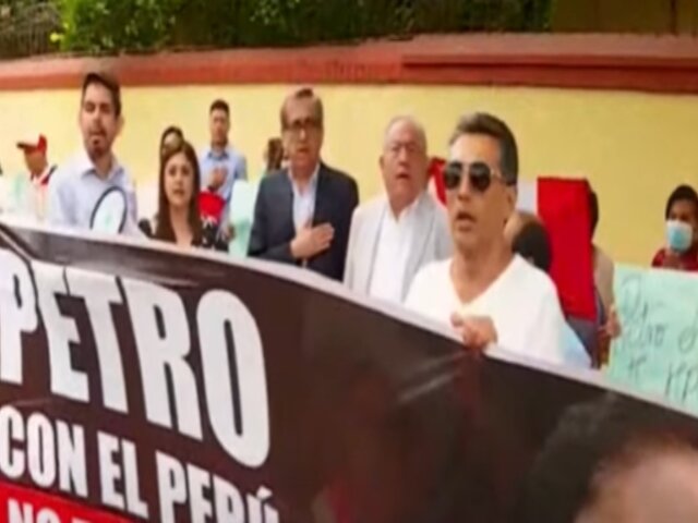 Un grupo de manifestantes pacíficos decidieron realizar un plantón en los exteriores de la Embajada de Colombia, luego de que el presidente Gustavo Petro, se pronunciara sobre el Perú, defendiendo al exmandatario Pedro Castillo.