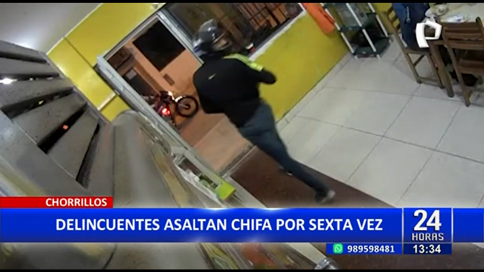 Por sexta vez, dos delincuentes armados llegaron hasta un chifa ubicado en una concurrida calle de Chorrillos, para asaltar a los clientes y llevarse las ganancias del día.
