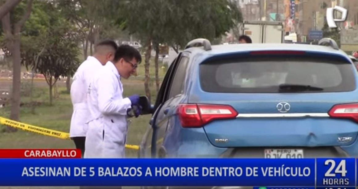 Un hombre quien se movilizaba a bordo de su vehículo por la avenida Universitaria, en el distrito de Carabayllo, fue asesinadoa balazos por dos delincuentes que se trasplantaban a bordo de una motocicleta. La víctima identificada como Jesús Manuel Requena, recibió hasta cinco disparos por parte de uno de los sicarios.
