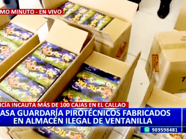 La Policía Nacional encontró cientos de cajas con productos pirotécnicos que eran almacenados en una vivienda del Callao, en Ventanilla. Los dueños colocaban diversos productos como medias u otras sobre los pirotécnicos para evitar ser descubiertos.