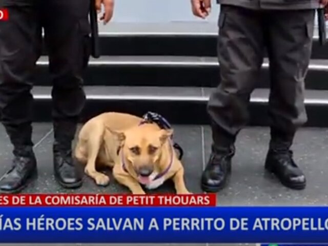 Agentes de la Policía Nacional del Perú, de la comisaria de Petit Thouars, salvo a una mascota de morir atropellada, cuando se encontraba perdido y asustado en las inmediaciones de la avenida Arequipa. Los agentes policiales quienes lo rescataron indicaron que, el animal está en bunas condiciones de salud.