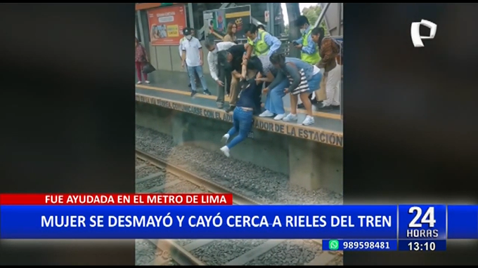 Una joven mujer se desmayó mientras esperaba el transporte en el metro de Lima, cayendo a la rieles del tren.
