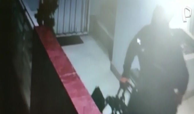 Cámaras de seguridad captaron al sujeto ingresar al edificio en horas de la madrugada para robar la silla de ruedas.