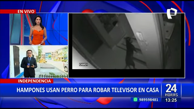 A la salida del perro, la pareja de delincuentes confirma que la casa estaría completamente sola, por lo que ingresan y con gran rapidez se llevan un costoso televisor de la casa.