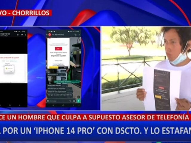 Un joven de nombre David fue estafado con más de 11 mil soles tras realizar la compra de varios equipos de modelo iPhone 14 Pro, que había sido ofrecido con descuento por una operadora móvil. Según señala la víctima que recide en Chorrillos, recibió una llamada de un asesor comercial ofreciéndoles el equipo a un módico pareció, y que había accedido a esta promoción tras calificar en la plataforma.
