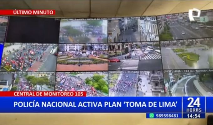 Desde la Central de Monitoreo 105, el jefe de esta unidad, Coronel Jorge Quiroz, explicó el procedimiento que ha iniciado la PNP frente a esta marcha, para garantizar la seguridad de los transeúntes.