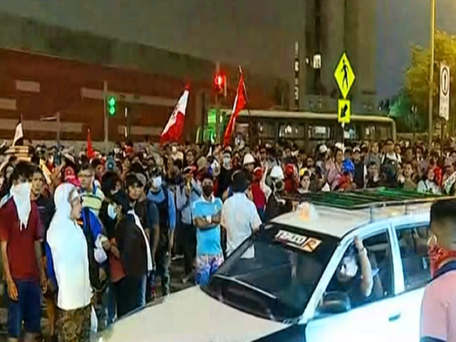 Decenas de manifestantes llegaron hasta los exteriores de la Dircote en la avenida España, en el centro de Lima para exigir la liberación de los más de 200 intervenidos en la Universidad Nacional Mayor de San Marcos (UNMSM).