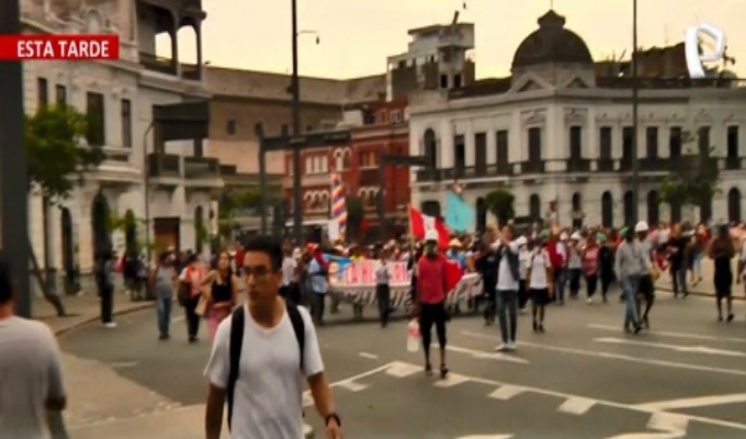 Las protestas en contra del gobierno de la presidenta Dina Boluarte continúan en el centro de Lima. La marcha inició cerca de las 5 de la tarde y tuvo la participación de cerca de 1000 personas.
