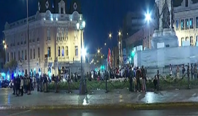 A esta hora, 8 de la noche, el panorama en el centro de Lima, en la plaza Dos de Mayo, es tranquilo. Además, un gran cordón policial viene resguardando la zona para evitar que sea tomada por los manifestantes.
