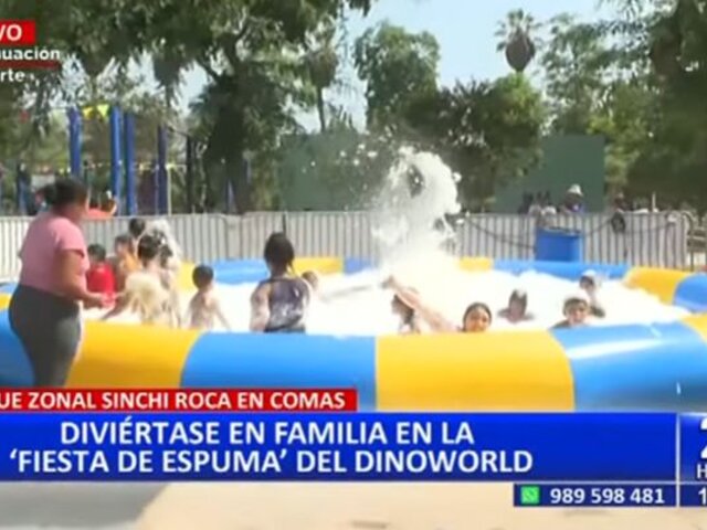 Ante esta demanda, el "Dinoworld" del Parque Zonal Sinchi Roca, en el distrito de Comas, viene poniendo a disposición de sus visitantes la "fiesta de espuma", con el objetivo de poder recrearse y a la vez combatir el calor.